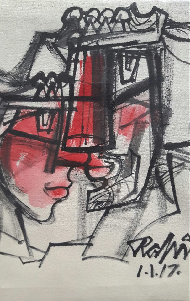 January always starts with a bang for us, his art students. We are known as Generation Rahi, because we are students of our mentor Mansoor Rahi the legendary figure. He throws a huge lunch party on 1st of January which is his birthday. Turning 78 and looking amazing in his red shirt and black trouser. He had asked us all to come all dolled up for his party. To make sure we don’t turn up in our usual casuals with paint splattered all over us. As Nashesh said, “All of us were there aged sixteen to sixty.” – I mean all of us sixteen to sixteen! – yes, I’m are talking about our hearts now!