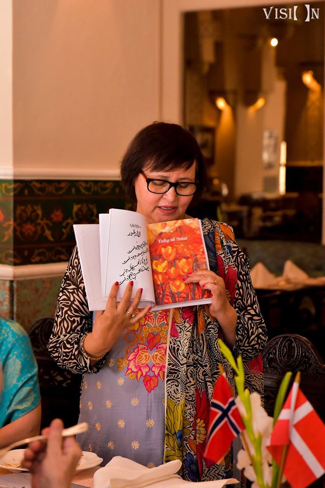 As the meeting continued, I felt a deep quenching of my thirst for such a gathering here in Islamabad. Writers getting together to share their accomplishments with each other; No doubt the synergy is awesome when people of same interests get together. The group was quite eclectic, with members coming from UK, Norway, Finland and different areas of Pakistan. There was an actor, along with educationists, lawyers, artists and lecturers. So, it was wonderful to be among them. The table reserved in the center of the hall had taken over the entire hall it seemed.